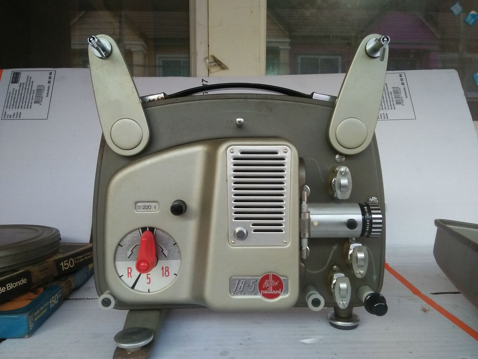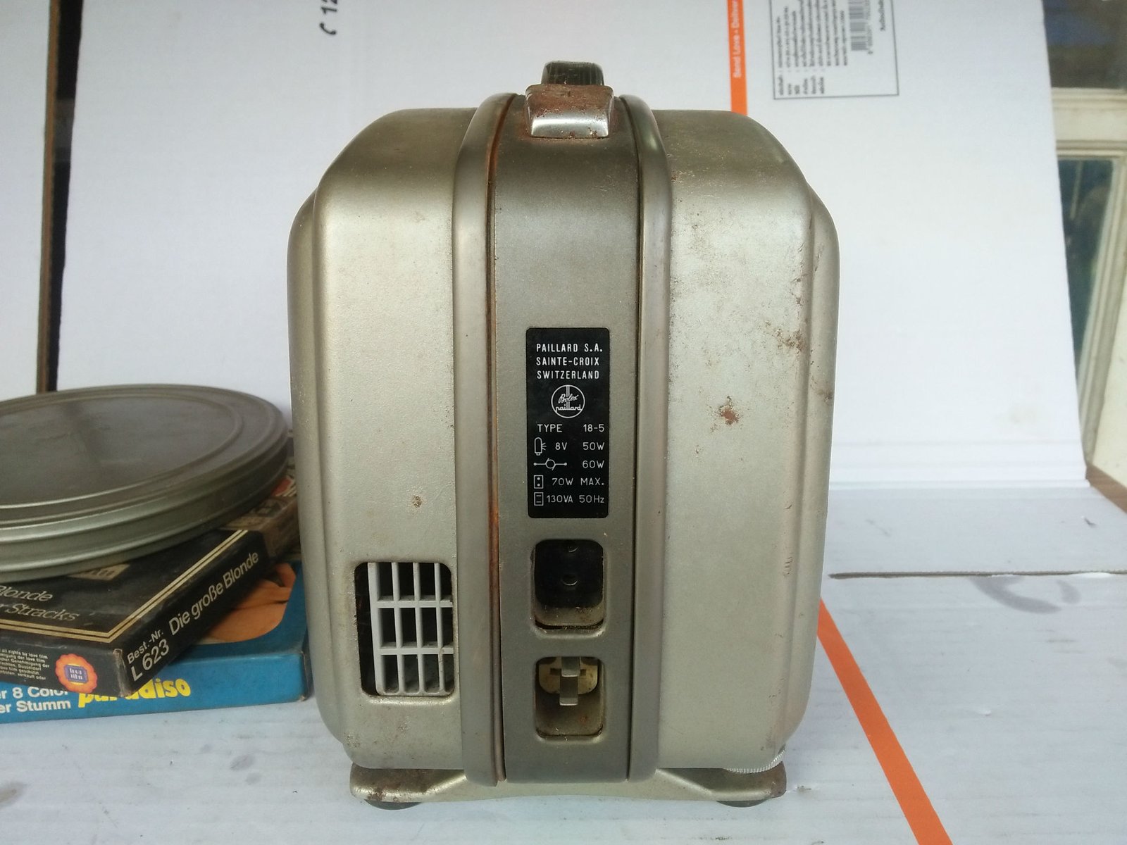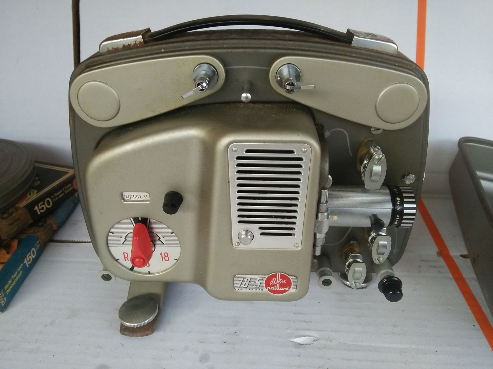 เครื่องฉายภาพยนตร์ Paillard Bolex 18-5 ใช้สำหรับภาพยนตร์ขนาด 8 มม.(ผลิตในสวิตเซอร์แลนด์) ไฟ 220V. บ้านเรา สายไฟ IEC หายเลยไม่ได้ลอง สภาพภายในเครื่องอะไหล่อุปกรณ์ยังเอี่ยม เก็บมาอย่างดี แต่ม้วนหนังที่ได้มาด้วย แผ่นฟิลม์กรอบหมดแล้ว ขายเพื่อการสะสมครับ