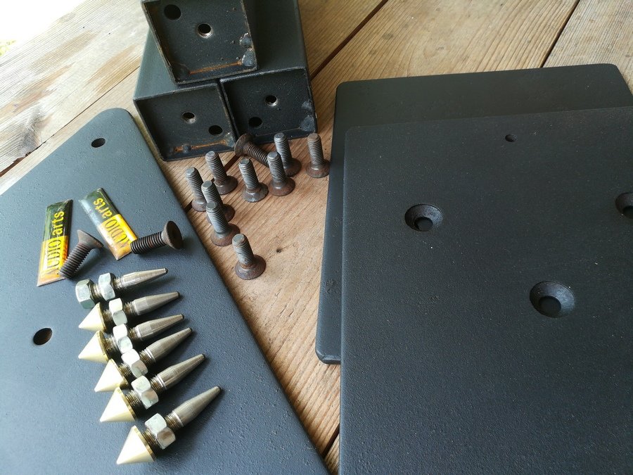 เหล็กเพลทบน-ล่างค่อนข้างหนา ราว 5-6 มิล ความสูงรวมสไปค์ที่ฐานล่าง 24 นิ้ว