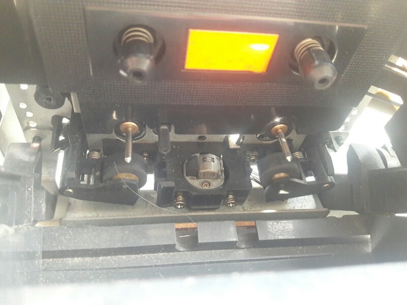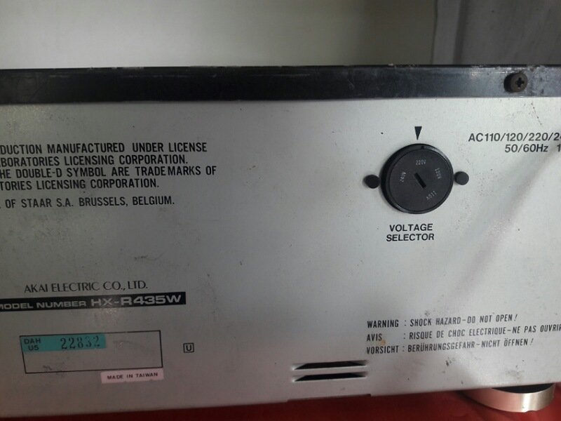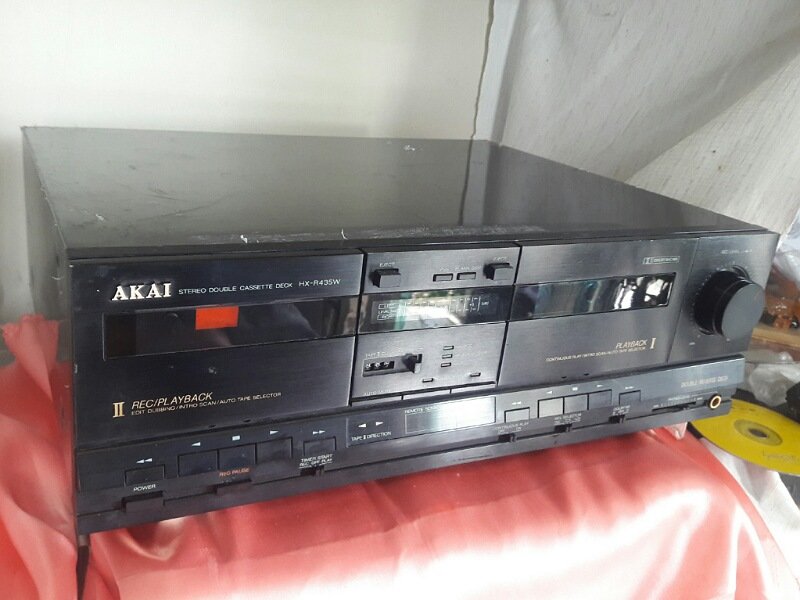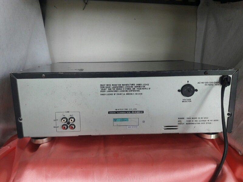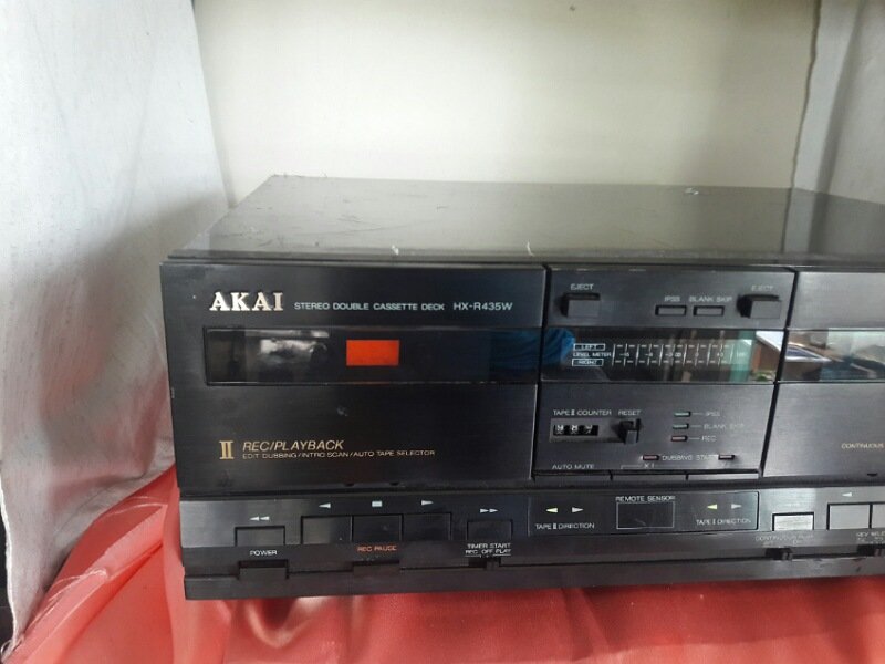 เป็นแบบ สองหลุม เข้ามาอีกเครื่องฝั่งซ้ายยังเล่น กรอได้ ฝั่งขวาเล่นแล้วหยุด หัวเทปยังสะอาด ทั้งสองฝั่ง เสียงไม่ออกทั้งด้านซ้ายและขวา ใช้ไฟบ้านเรา ตัวเครื่องใหญ่ และหนักเหมือนกัน รุ่น hx 435w ข้างในวงจรแน่นเดิมๆ