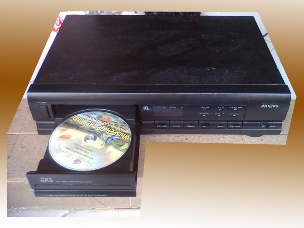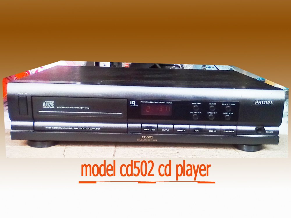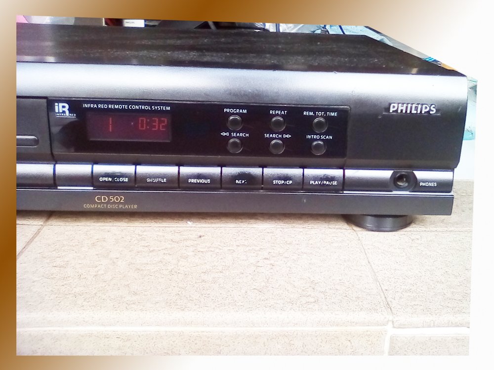 ขายเครื่องเล่น cd ฟิลลิป รุ่น cd 502 made in maxico ใช้ไฟบ้านเรา/// เฟืองขับถาดแตก ต้องใช้มือเลื่อนเข้าออกเปลี่ยนแผ่น/// การอ่านแผ่น เครื่องยังอ่านแผ่นได้ไวมาก ทั้งแผ่นแท้แผ่น ไรท์