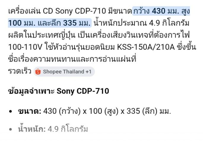 Cdp sony cdp710 อ่านแผ่นไวมาก เล่นกับแผ่ไรท์ได้ เสียงใสๆ ใช้หัวอ่าน kss150 or 210 เครื่องนี้ใช้ไฟบ้านเราได้เลย ตัวเครื่องหนัก 4.9kg. ขนาดมาตฐาน หน้าจอชัด made in japan ปุดกดได้ปกติ