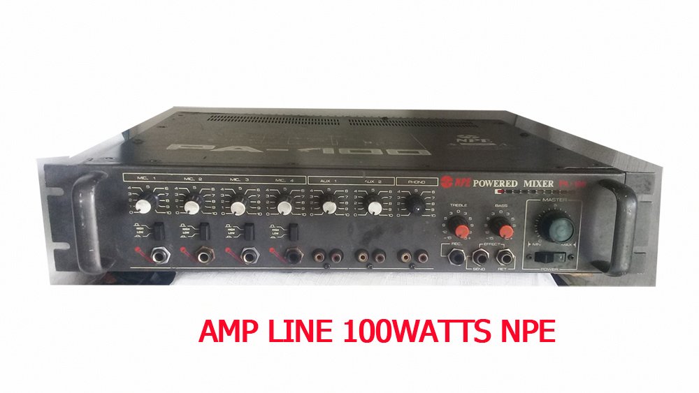 ขาย แอม line npe 100 watts ใช้ไมค์โครโฟนได้ 3 ตัว กับ สีญญาณเข้า 2 ช่อง aux