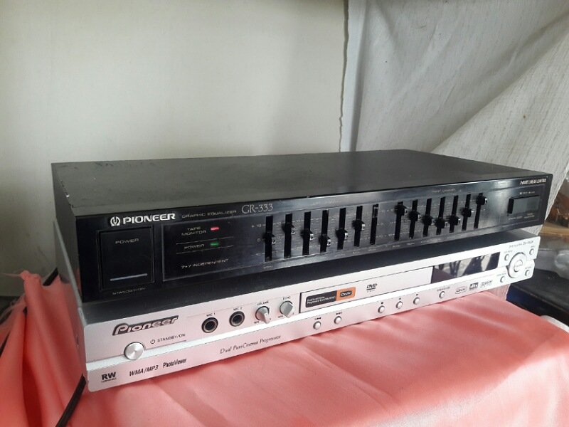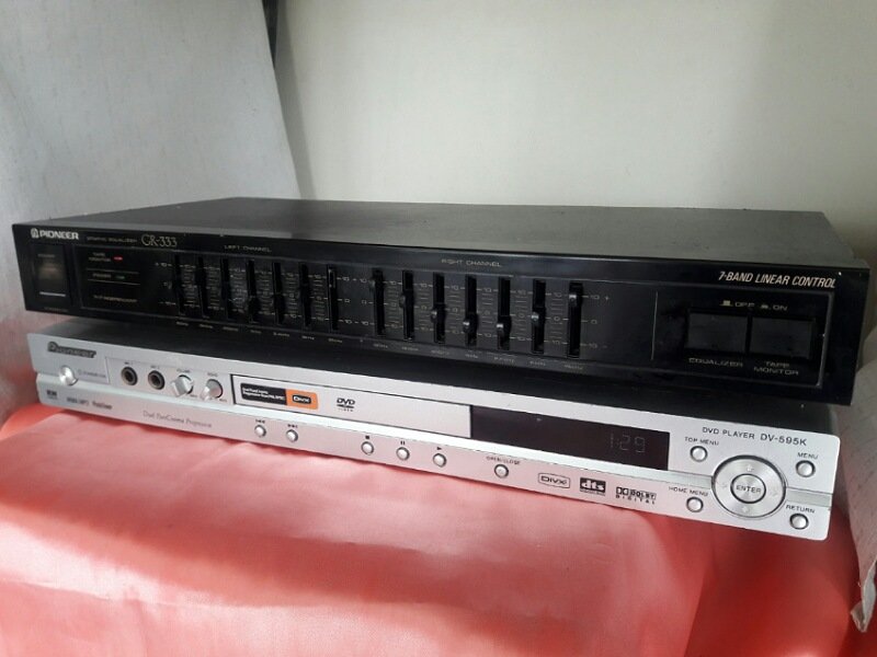 ///เหลือแต่ eq ครับ ////ขาย eq กับ mp3 dvd pioneer eq มีตำหนิจุกตรงปุ่มฝั่งซ้ายหายไป 1 อัน เหลือแต่ก้านยังปรับขี้นลงได้ปกติ นอกนั้นอยู่ครบ เป็น eq 7 ch x2 ปรับแต่งเสียงได้ทุกช่อง ปรับใช้หรือผ่าน eq ก็ได้ เครื่อง made in japan ใชไฟบ้านเรา กับ ตัวเครื่องเล่น mp3 dvd cd pioneer อ่านแผ่นได้ปกติ ทั้ง mp3 และ dvd
