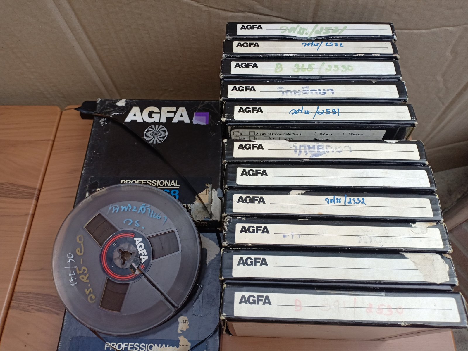 ม้วนเทปรีล 5 นิ้ว ได้จากสถานีวิทยุ โดยมากบันทึกเรื่องเก็บเก่าเล่าใหม่ เล่าเรื่องราวต่างๆ เนื้อเทปยังดี ทดลองเปิดฟังเสียงยังใสชัดเจนดี ขายม้วนละ 120 บาท ค่าส่งครั้งละ 50