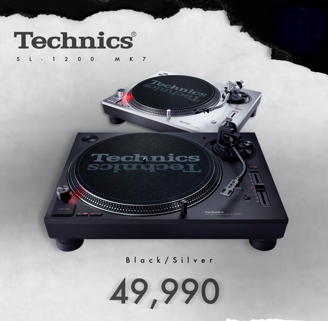 เครื่องเล่นแผ่นเสียง Technics รุ่น SL-1200 MK7 (สี Silver) และรุ่น SL-1210 MK7 (สี Black) ได้รับการผลิตออกมาใหม่ล่าสุดให้ลูกค้าได้สัมผัสพร้อมกับเทคโนโลยีระบบ Direct Drive ไม่ใช้สายพาน มีความทนทานสูง รูปแบบตัวเครื่องสวยงามดุดันและหรูหรา ควรค่าแก่การเป็นเจ้าของและเก็บสะสม!