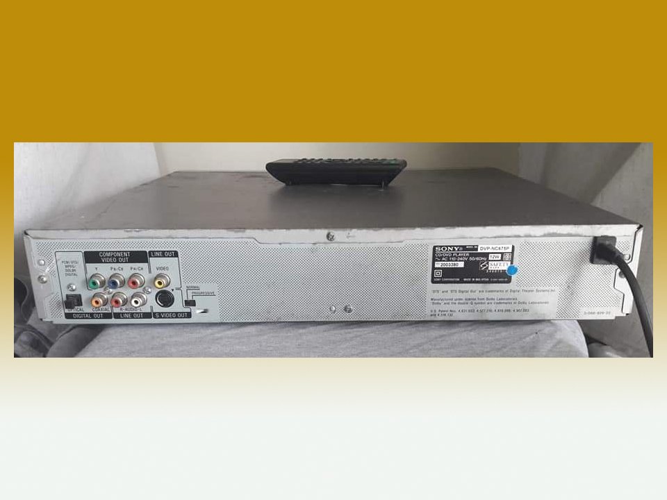 เครื่องเล่น dvd 5 แผ่น sony เล่นได้ทุกช่อง ใช้กับแผ่น ก๊อปได้ อ่านแผ่นได้ทั้ง cd dvd mp3 เป็นรุ่น ใหญ่ dvp nc675p มีรีโมทให้แต่ไม่ตรงรุ่นครับใช้เปลี่ยนเพลงได้ ตำหนิฝาครบมีรอยบ้าง *** อ่านแผ่นดีมาก ใช้ฟังเพลงเสียงสดใส ยังเล่นแผ่นต่อเนื่องได้ 1 -5 แผ่น ตัวเครื่องขนาดใหญ่ กลไกลถาดเข้าออก และ การหมุนแผ่นยังนิ่มนวลและรวดเร็วดี *** ปรับราคาใหม่ 1700. รวมส่ง สนใจติดต่อได้ 0811432783