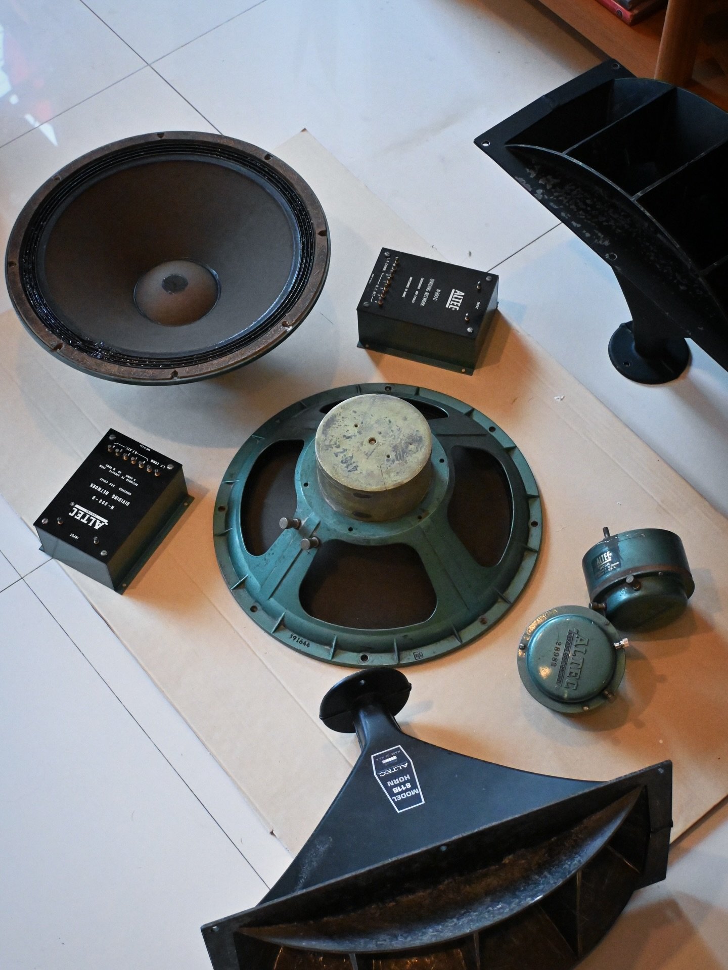 ชุด Altec A7 แบบ 16 โอห์ม ครบทั้งชุด พร้อมฟังและพร้อมประกอบเข้าตู้ได้ทันที ตัว Driver ป็นของเดิมทั้งหมด สภาพมีตำหนิภายนอกตามอายุการใช้งานแต่ไม่มีผลต่อคุณภาพเสียง ชุด 16 โอห์มถือเป็น Milestone สำหรับนักเล่น Altec และค่อนข้างหายากมากในตลาดปัจจุบัน