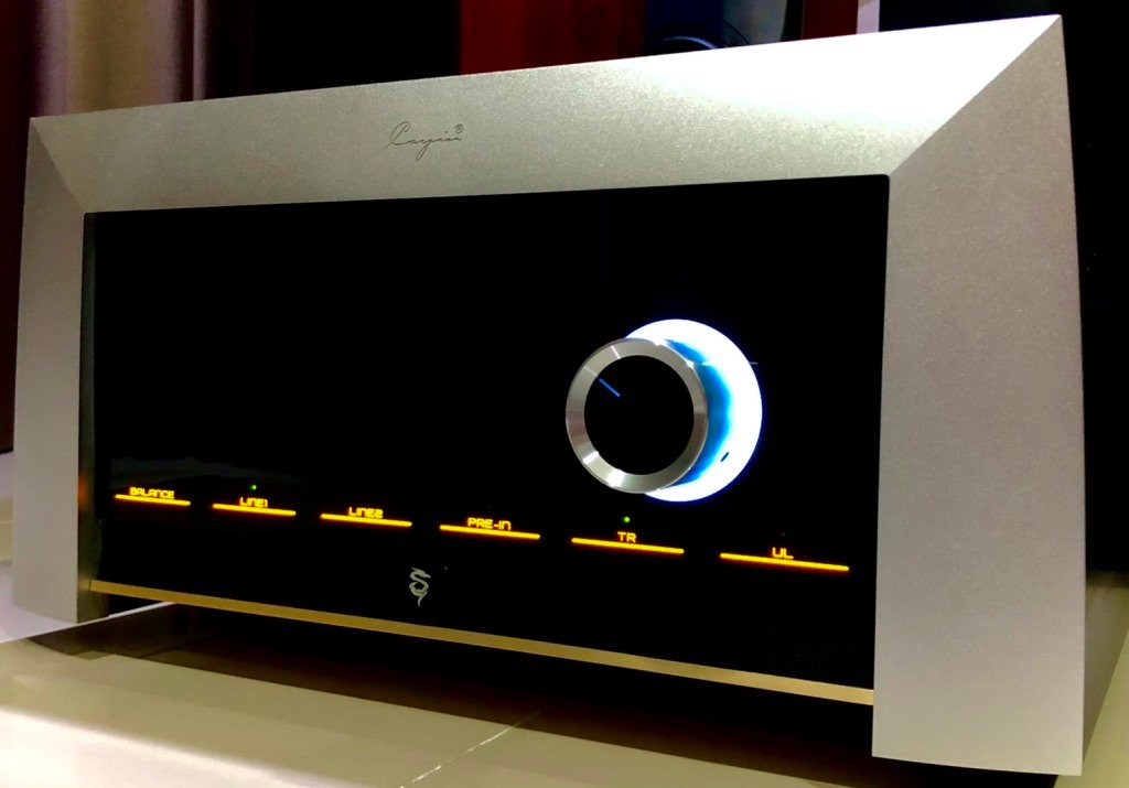 Cayin รุ่น M-52T สุดยอดอินทิเกรทแอมป์หลอดสุญญากาศจากแดนมังกร เป็นรุ่นใหญ่ยักษ์รองทอป คุณภาพเสียงไฮเอนด์ระดับโลก ให้กำลังถึง 80 วัตต์ต่อข้าง เครื่องหนัก 50 กิโลกรัม ใช้หลอดรุ่น KT88 จำนวนมากถึง 8 หลอด สามารถใช้เป็น Power Amp ได้ด้วย ต่อลำโพงได้ทั้ง 4 โอห์ม และ 8 โอห์ม มีช่องต่อสายสัญญาณขาเข้าทั้งแบบ XLR และ RCA รวมถึงภาค PRE-IN ขั้วทั้งหมดใช้ WBT เสียงหวานละมุนมาก รายละเอียดพรั่งพรูระยิบระยิบถ่ายทอดออกมาอย่างมีชั้นเชิง ให้ความหนักแน่นและโอนอ่อนผ่อนปรนลงตัวสุดๆ เนื้อเสียงอิ่มหนาชุ่มฉ่ำมีน้ำมีนวล มาพร้อมมวลและสเกลอลังการ แยกแยกตำแหน่งเครื่องดนตรีและแสดงตัวตนนักร้องได้ยอดเยี่ยม เวทีโอบล้อมให้ความโอ่อ่าดีมากและเต็มอิ่มกับบรรยากาศเสียงที่แผ่ปกคลุมไปทั่วห้อง พร้อมกับให้พื้นฐานของความสงัดอย่างสุดยอด เบสลูกใหญ่โตและอิ่มเอม จังหวะจะโคนกลางๆไม่อืดไม่ดึงหน่วงจังหวะมากนัก กลับให้ไดนามิคและมีแรงปะทะดีอย่างน่าประทับใจ เสียงเข้าเกณฑ์ไฮเอนด์อย่างแน่นอน หวานเนียนละมุนถึงใจ ใช้ได้หลากหลายแนวเพลง โดยเฉพาะสาวๆเสียง Vocal ฟังแล้วพริ้มจริงๆ M-52T เป็นอีกหนึ่งผลงานอลังการบรรจงสร้างจากค่าย Cayin ขับลำโพงตั้งพื้นลูกใหญ่ได้สบายๆเลย รุ่นยักษ์แบบนี้ไม่มีให้เห็นบ่อยๆ ก่อนนั้นราคาเปิดตัวประมาณ 140,000 เวลานี้เป็นโอกาศอันดีที่ท่านจะได้เป็นเจ้าของ M-52T ในราคาสุดคุ้ม รีรอชักช้าอยู่ไย จัดสิครับ