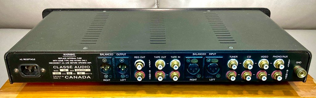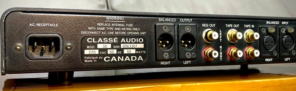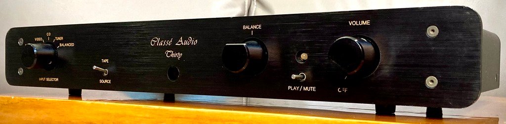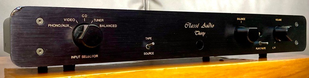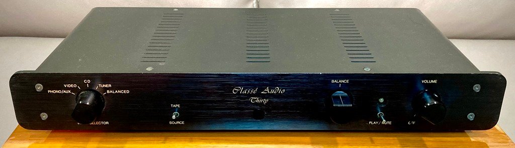 CLASSE รุ่น Thirty สุดยอด Pre- Amp. จาก Canada รูปลักษณ์เรียบหรูเคร่งขรึม เสียงดีมาก เป็น Audiophile ในบรรยากาศอนาลอค มีช่องสัญญาณ in/out ทั้ง RCA และ Balanced XLR ยิ่งกว่านั้นมี Pre Phono ทั้ง MM และ MC ที่ให้เสียงนิ่งสงัด ไพเราะล้ำลึกมาก เสียงนั้นสุดยอด มีกลิ่นอายบรรยากาศของความไฮเอนด์ให้สัมผัสได้ชัดเจน พื้นหลังนิ่งสงัด มิติโอ่โถงเวทีกว้าขวาง ความตื้นลึกชัดเจน แยกแยะเครื่องดนตรีและจัดวางตำแหน่งได้เฉียบขาด ตัวตนของเครื่องดนตรีและตัวนักร้องทำได้จะแจ้ง ฟังแล้วหลงใหลชวนฝันมากๆ โทนออกสุภาพโปร่งสะอาดสดใส ไดนามิคพุ่งตัวดี จังหวะจะโคนเป็นกลาง แสดงรายะเอียดต่างๆได้ดี เสียงเล็กๆน้อยๆพรั่งพรูท่วมท้น แยกเสียงนักร้องจากดนตรีชัดเจน แต่ยังคงความเป็นรูปวงไว้อย่างลงตัวสวยงาม ประหนึ่งเวทีได้ถูก set up ไว้ตรงหน้าท่านแล้วจริงๆ ได้ไปใช้ในราคาหนึ่งหมื่นกลางๆ นับว่าคุ้มค่าเป็นที่สุด เทียบกับปรีแอมป์ฯยุคนี้ในราคาสามสี่เท่าตัวได้สบายๆ