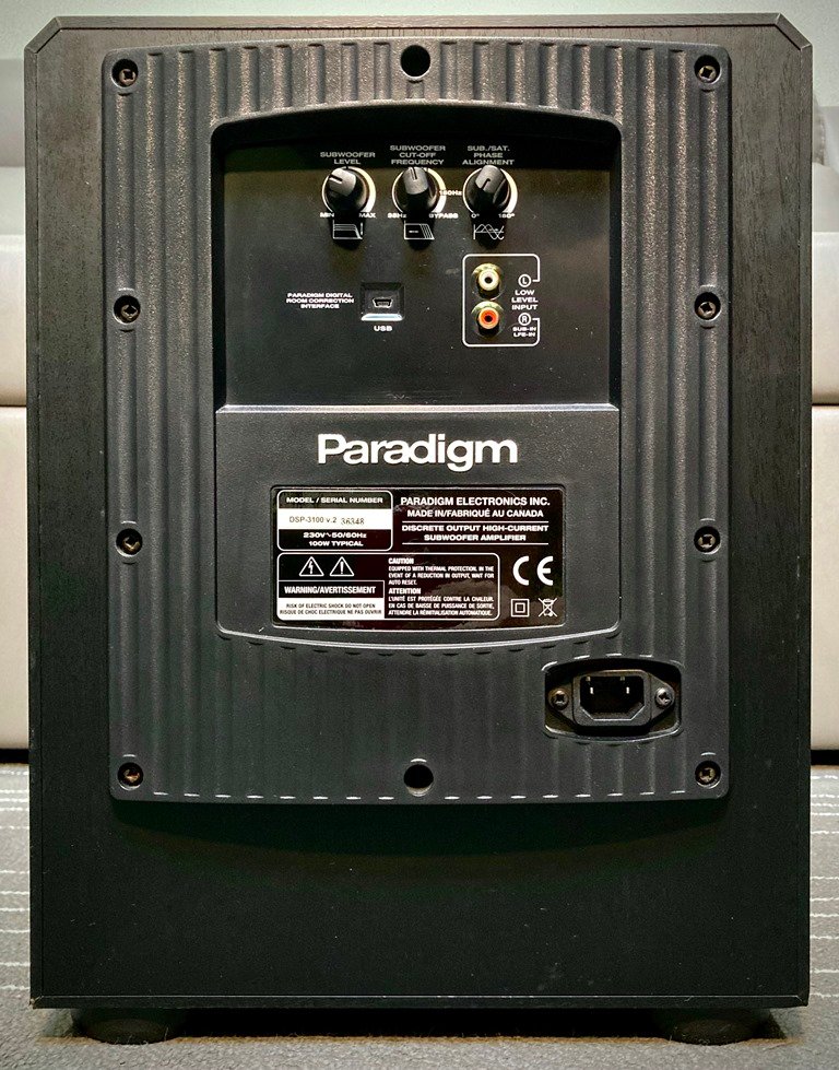 Paradigm รุ่น DSP-3100 V2 เป็นแอคทีฟซับวูฟเฟอร์ ผลิตใน Canada เสียงดีแรงปะทะสุดยอดมาก ใช้ได้ทั้งดูหนังและฟังเพลง เป็นซับฯขนาด 10 นิ้ว ระบบตู้เปิด กำลังขับ 600 วัตต์ ติดตั้งดอกลำโพงและท่อลมอยู่ด้านหน้า ราคาเปิดตัวสามหมื่นกว่าบาท เบสคมชัดออกมาเป็นลูกๆ โดดเด่นที่แรงปะทะและกระแทกกระทั้น เสียงมีมิติคลุมห้องดี เก็บตัวไวเซ็ตง่าย คุณภาพเยี่ยมเกินราคา