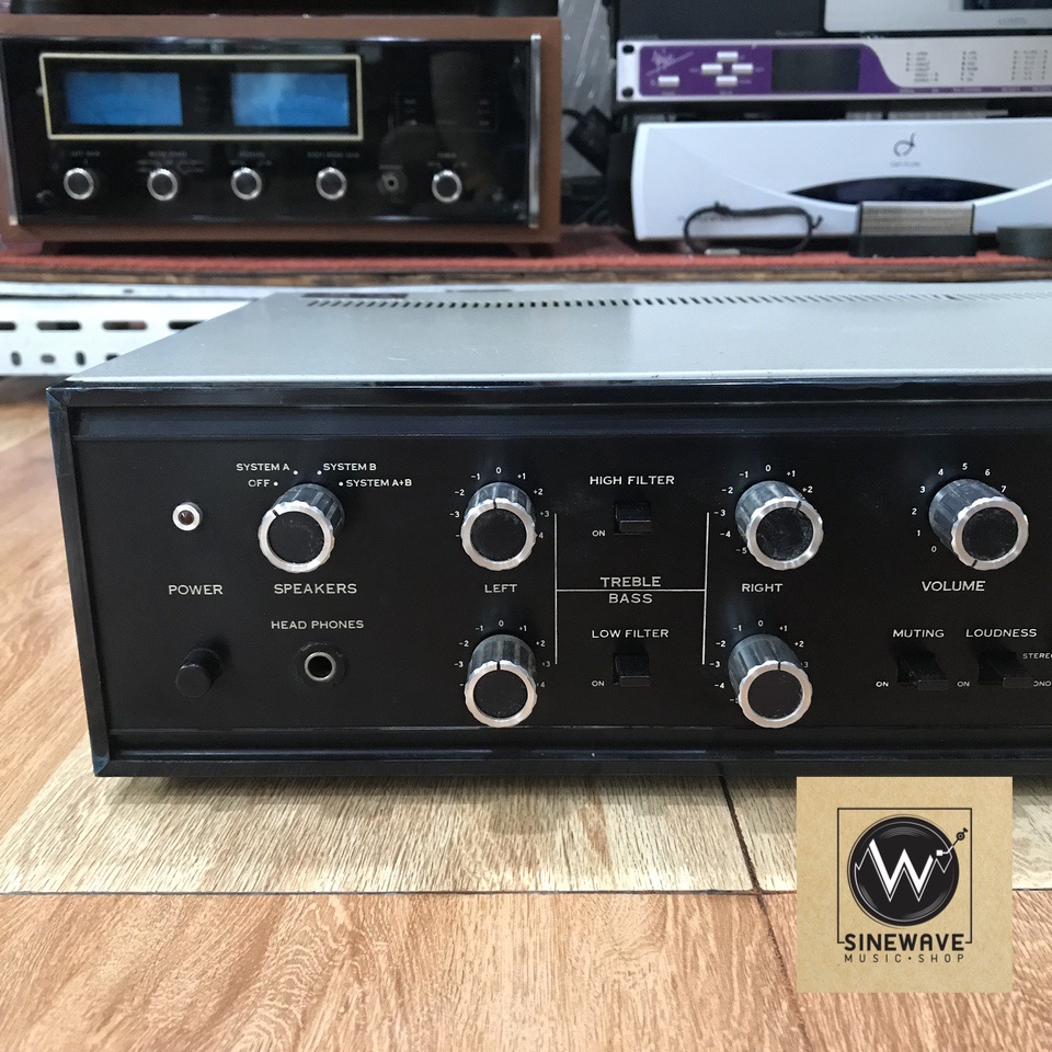 20/20W±1dB (8ohm)THD 0.5% Cross modulation distortion (60Hz:7000Hz=4:1) 0.8% Power Band Width (IHF) 20Hz - 30000Hz (distortion 0.5%) Frequency characteristic 20Hz - 80000Hz, ±1dB (by normal output) A hum and a noise (IHF) Closed circuit: 100dB Input sensitivity/impedance 1V/100kohm Dumping factor High:45