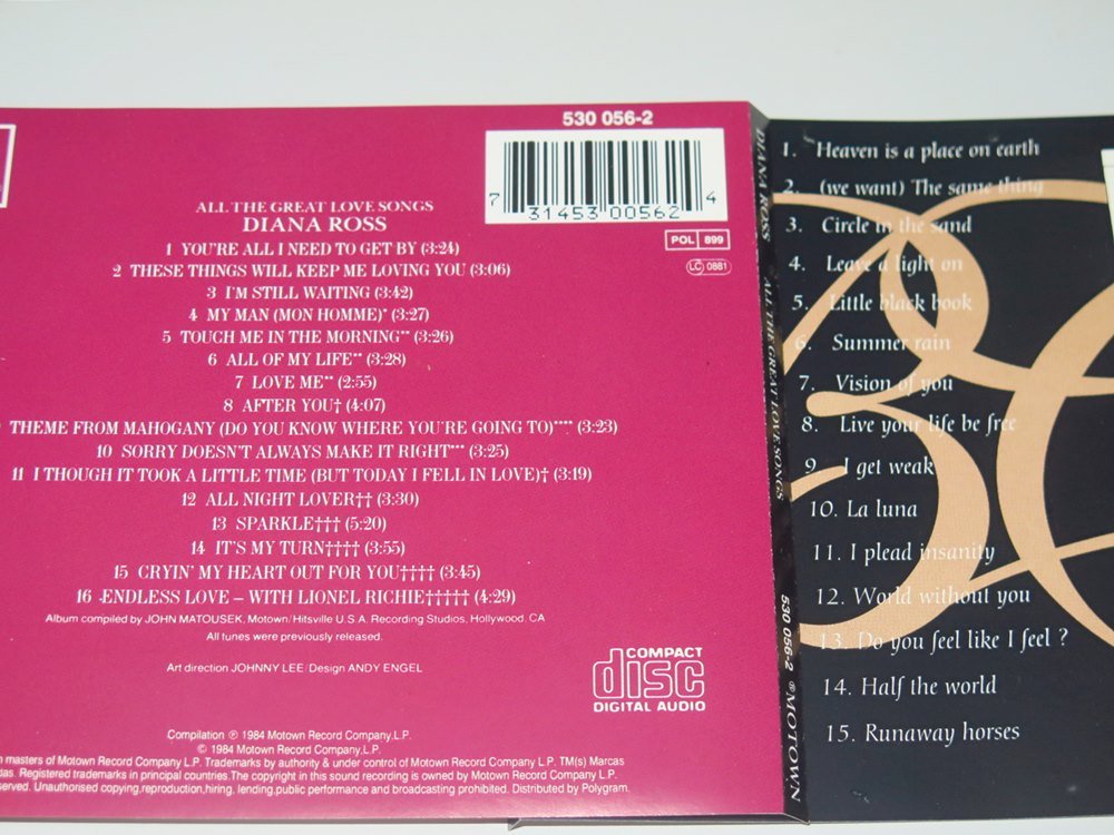 238. Diana Ross All The Great Love Songs มี 16 เพลง แผ่นโดยรวมสวย / Made in Germnay / 180-