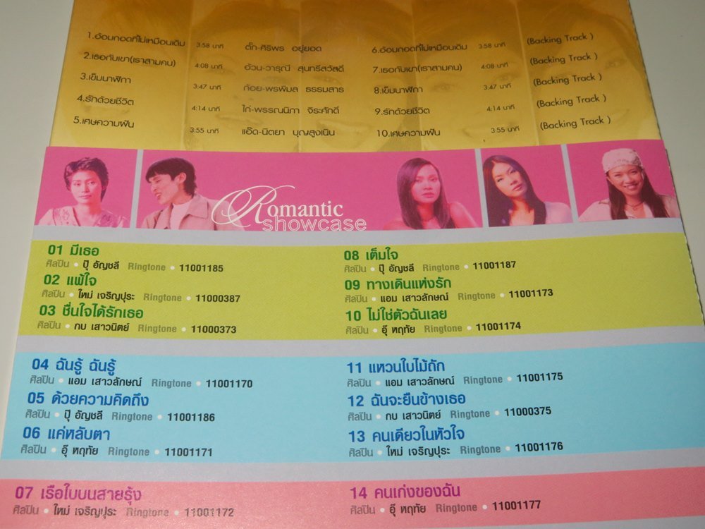 - Romantic Showcase รวมเพลงโรแมนติกฟังสบาย จาก อุ๊, ปุ๊, ใหม่, แอม, กบ มี 14 เพลง แผ่นสวย / ขายคู่ 220-