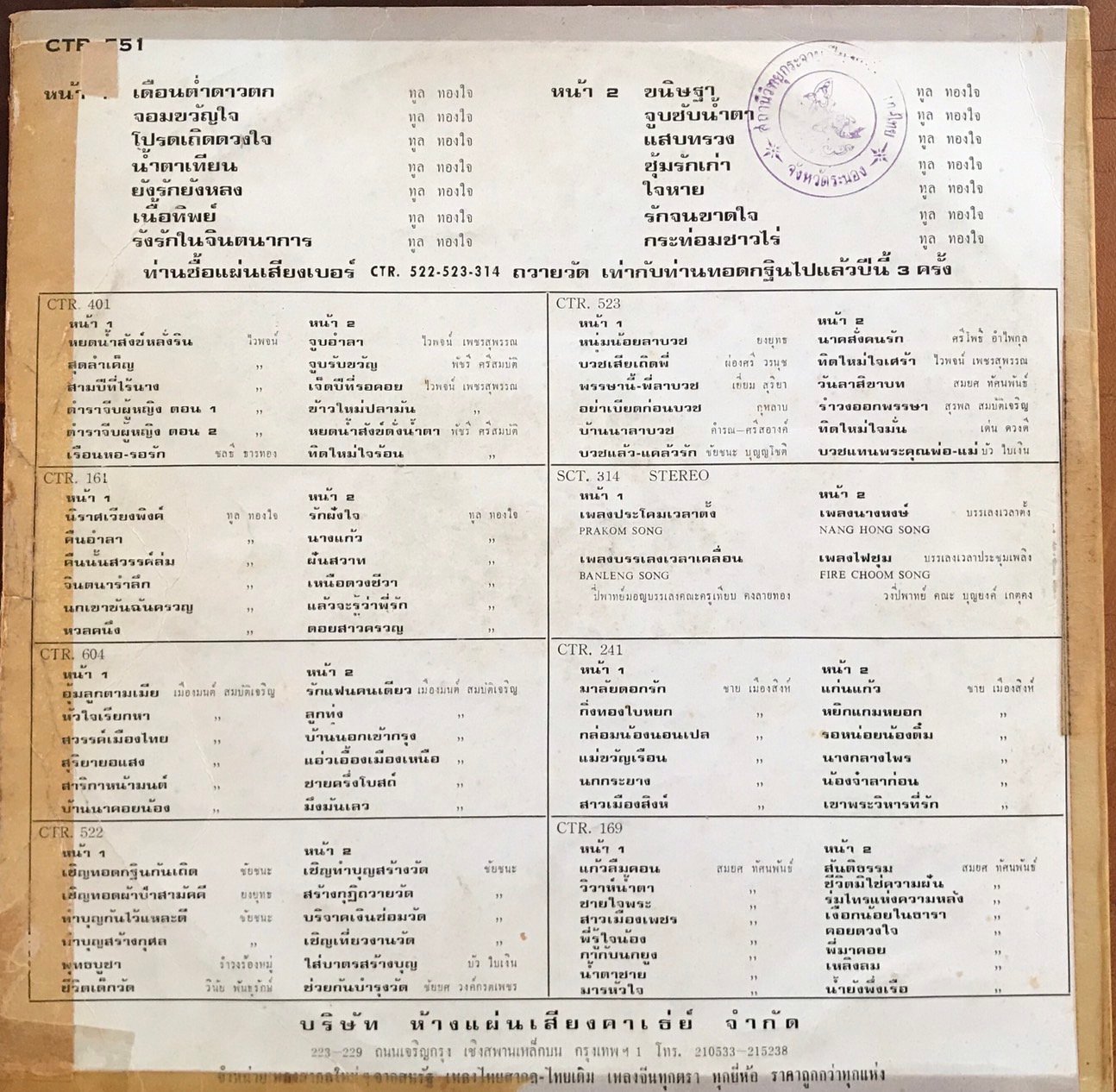 ขายแผ่นเสียงเพลงไทย 24-02-2022