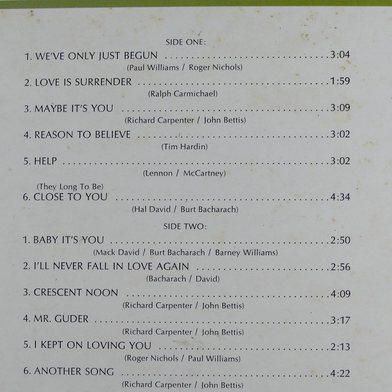 2.Carpenters UK ปกVG++ แผ่นVG++เกือบNM มีรอยบางๆนิดเดียว 500