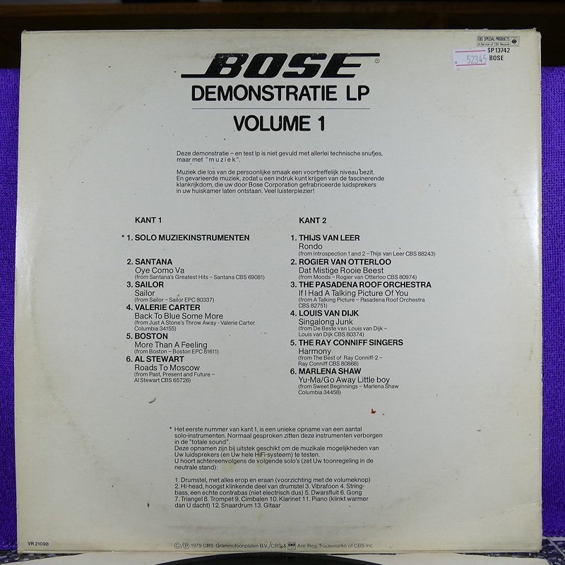3.Bose HOLLAND ปกVG++ แผ่นVG++เกือบNM มีรอยบางๆนิดเดียว 750