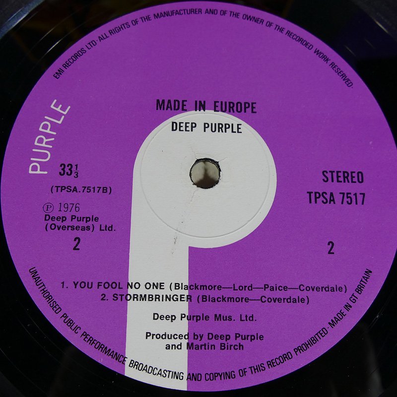 3.Deep Purple UK ปกVG++ แผ่นVG++ มีรอยบางๆเล็กน้อย 650