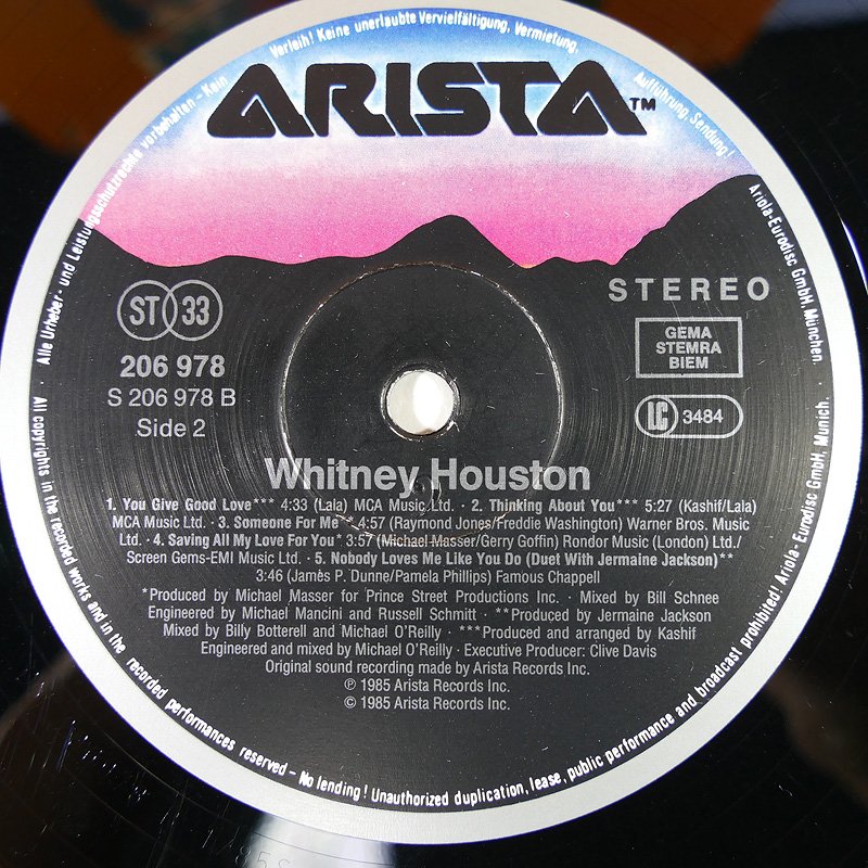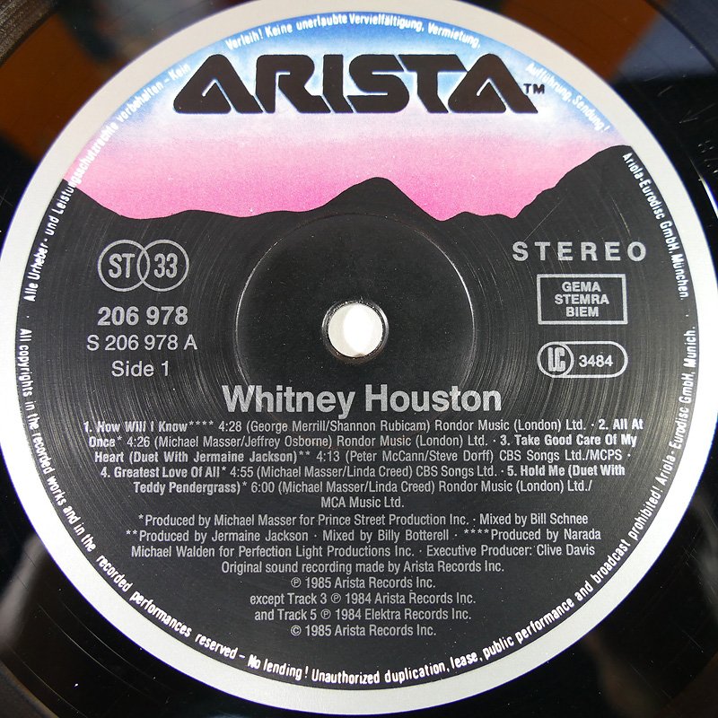1.Whitney Houston GERMANY 1985 ปกVG++ToNM แผ่นVG++ มีรอยบางๆไม่มีรอยลึก 650