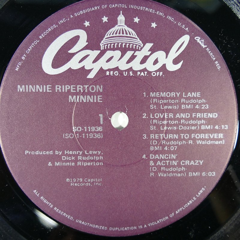 2.Minnie Riperton USA 1979 ปกNM แผ่นVG++ToNM มีรอยบางๆนิดเดียว 550