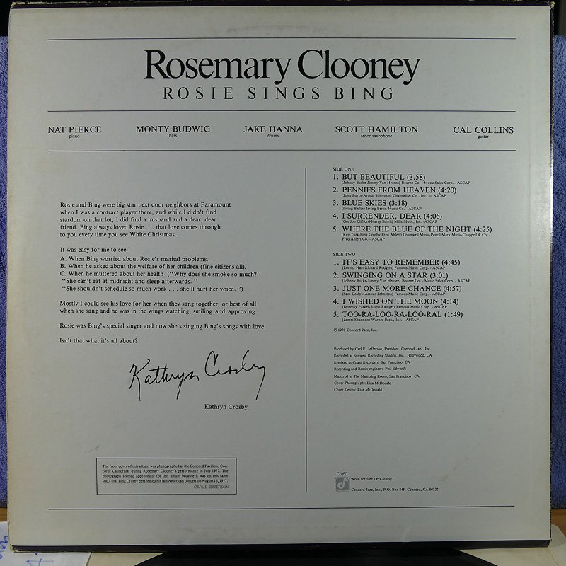 5.Rosemary Clooney USA 1978 ปกVG+ToVG++ แผ่นVG++ToNM มีรอยบางๆนิดเดียว 650