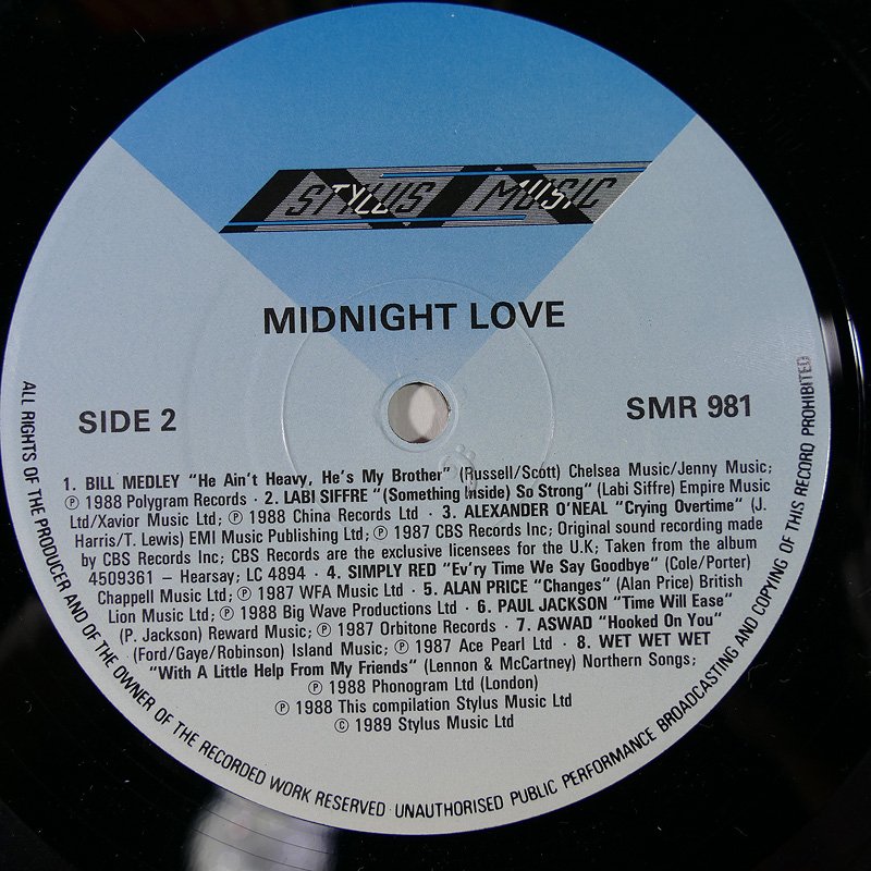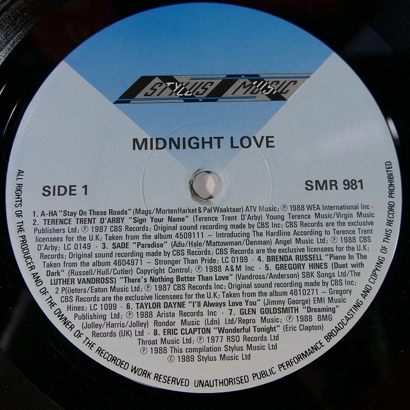 8.รวมหลายศิลปิน Midnight Love UK 1989 ปกVG++ แผ่นVG++ToNM มีรอยบางๆนิดเดียว 500
