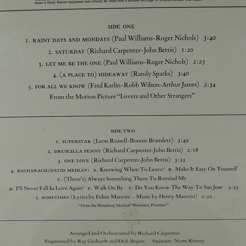 6.Carpenters UK ปกVG++ แผ่นVG++ มีรอยบางๆเล็กน้อย 500
