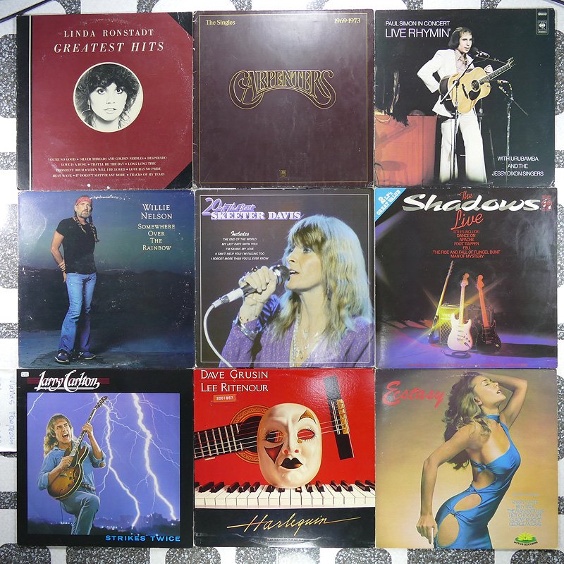 2.Carpenters UK ปกVG++ แผ่นNMไม่มีรอย 700แนวเพลง Pop Folk ฟังสบายๆนักร้องหญิงเสียงดี มีเพลงดังเช่น Yesterday Once More3.Paul Simon HOLLAND ปกVG++ แผ่นNMไม่มีรอย 450แนวเพลง Pop Folk ฟังสบายๆนักร้องชายเสียงดี มีเพลงดังเช่น The Sound of Silence4.Willie Nelson USA ปกVG+ แผ่นNMไม่มีรอย 450แนวเพลง Pop Folk ฟังสบายๆนักร้องชายเสียงดี มีเพลงดังเช่น Over The Rainbow5.Skeeter Davis GERMANY ปกVG++ToNM แผ่นVG++ToNM มีรอยบางๆนิดเดียว 550แนวเพลง Pop Folk ฟังสบายๆนักร้องหญิงเสียงดี มีเพลงดัง The End of The World ถูกนำมาใช้ประกอบภาพยนต์ The Eternals6.The Shadow Live In Japan ปกVG++ แผ่นNMไม่มีรอย แผ่นคู่ 950แนวเพลง Pop Rock Oldies ฟังสบายๆบรรเลงกีต้าร์ยอดเยี่ยม สัมผัสซาวด์อันมีเอกลักษณ์แห่งยุค 60'sได้อย่างชัดเจน มีเพลงดังเช่น Apache7.Larry Carlton ปกVG++ToNM แผ่นNMไม่มีรอย 550แนวเพลง Modern Jazz Fusion ผสมผสานหลากหลายทั้งร็อคและแจ๊ซ ฟังสบายๆบรรเลงกีต้าร์ยอดเยี่ยม8.Lee Ritenour ,Dave Grusin USA ปกVG++ แผ่นVG++ToNM มีรอยบางๆนิดเดียว 550แนวเพลง Modern Jazz ฟังสบายๆบรรเลงกีต้าร์ยอดเยี่ยม มีการใช้คีย์บอร์ดซินติไซเซอร์อันเป็นเอกลักษณ์ของซาวด์แห่งยุค 80's9.รวมหลายศิลปิน Ecstasy UK ปกVG++ แผ่นVG++ToNM มีรอยบางๆนิดเดียว 450แนวเพลง Pop Folk ฟังสบายๆนักร้องชายหญิงเสียงดี มีเพลงดัง เช่น Loving You ของ Minnie Ripperon