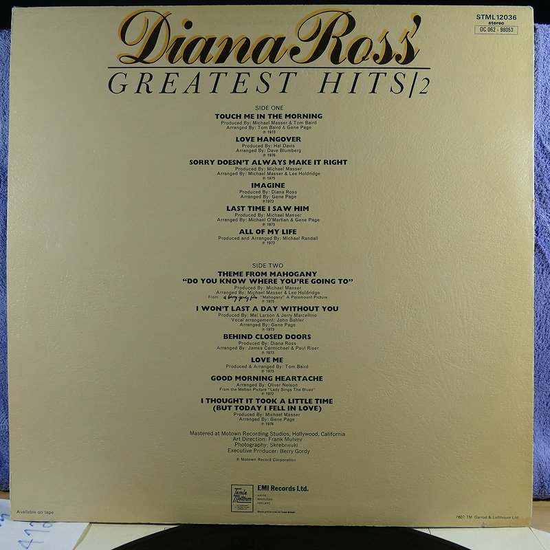 แนวเพลง Pop Folk ฟังสบายๆ มีเพลงดังเช่น Desparado5.Diana Ross UK ปกVG++ แผ่นVG++ มีรอยบางๆเล็กน้อย 400