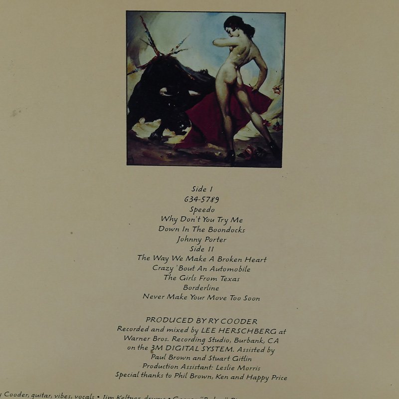 4.Ry Cooder GERMANY ปกVG++ แผ่นNMไม่มีรอย 500