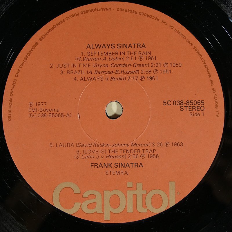 2.Frank Sinatra UK ปกVG++ แผ่นVG++ มีรอยบางๆไม่มีรอยลึก 350