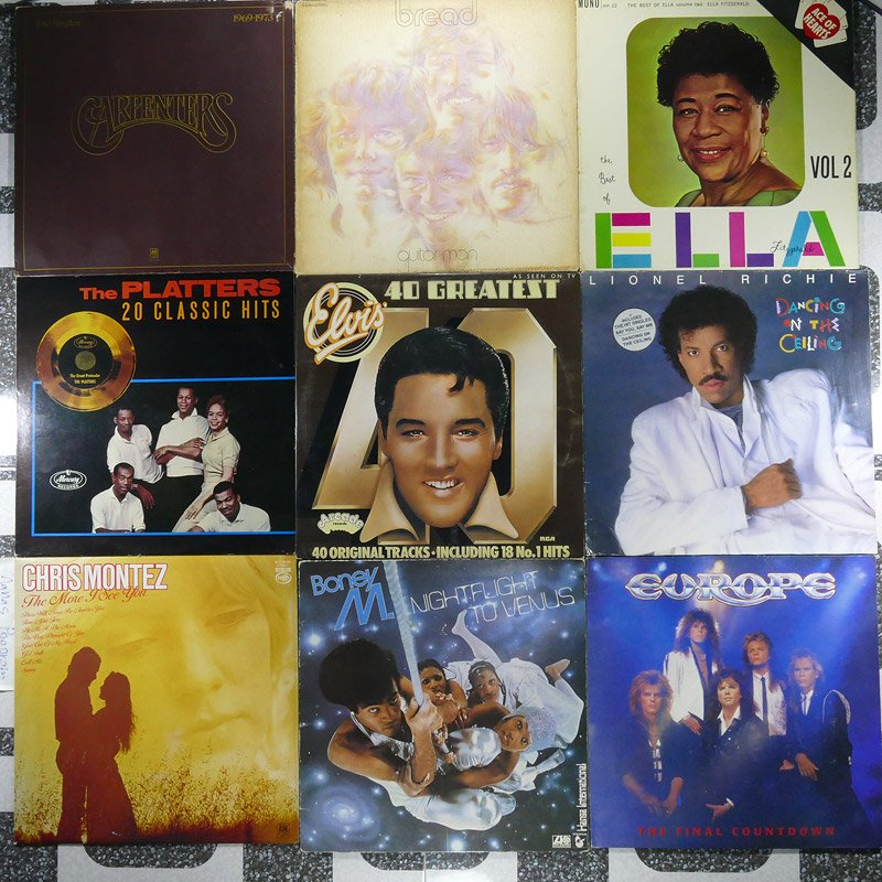 Quote from hippytoday on April 8, 2022, 11:25 am1.Carpenters UK ปกVG+ แผ่นVG++ToNM มีรอยบางๆเล็กน้อย 700Folk Pop ฟังสบายๆนักร้องเสียงดี มีเพลงดัง Yesterday Once More ,Superstar และอื่นๆ2.Bread UK 1972 ปกVG+ แผ่นVG++ มีรอยบางๆไม่มีรอยลึก 450Folk Pop ฟังสบายๆนักร้องเสียงดี มีเพลงดัง Sweer Surrender และอื่นๆ3.Ella Fitzgerald UK 1962 ปกVG++ แผ่นNMไม่มีรอย 600แผ่นรุ่นเก่าเสียงดี Jazz Oldies ฟังสบายๆนักร้องเสียงดี มีเพลงดัง Smooth Sailing และอื่นๆ4.The Platters ขายแล้วครับ5.Elvis Presley UK ปกVG+ToVG++ แผ่นVG+ มีรอยบางๆไม่มีรอยลึก เล่นปกติไม่มีสะดุดตกร่อง แผ่นคู่ 600Pop Rock Oldies ฟังสบายๆนักร้องเสียงดี มีเพลงดัง Can't Help Falling In Love , Love Me Tender และอื่นๆ6.Lionel Richie GERMANY 1985 ปกVG++ แผ่นVG++ มีรอยบางๆไม่มีรอยลึก มีคราบซองในเล็กน้อยไม่มีผลต่อเสียงหรือการเล่น 500Pop ฟังสบายๆนักร้องเสียงดี มีเพลงดัง Say You,Say Me และอื่นๆ7.Chris Montez UK ปกVG++ToNM แผ่นVG++ToNM มีรอยบางๆนิดเดียว 500Pop Oldies ฟังสบายๆนักร้องเสียงดี มีเพลงดัง Fly Me To The Moon, The More I See You และอื่นๆ8.Boney M. UK 1978 ปกVG++ แผ่นVG++ มีรอยบางๆเล็กน้อยไม่มีรอยลึก 500Pop Funk Disco ฟังสนุกนักร้องเสียงดี มีเพลงดัง Rasputin ,Rivers Of Babylon และอื่นๆ9.Europe UK 1986 ปกVG++ แผ่นNMไม่มีรอย 750Pop ,Hardrock นักร้องเสียงดี มีเพลงดัง The Final Countdown,Carrie และอื่นๆ
