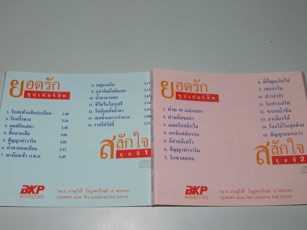 Quote from ocean on March 1, 2023, 5:50 pm195. ยอดรัก สลักใจ ฮิตแล้ว ฮิตอีก 1 มี 14 เพลง แผ่นโดยรวมสวย / BKP-CD 259 / SM ขอบฝ้า / 500-