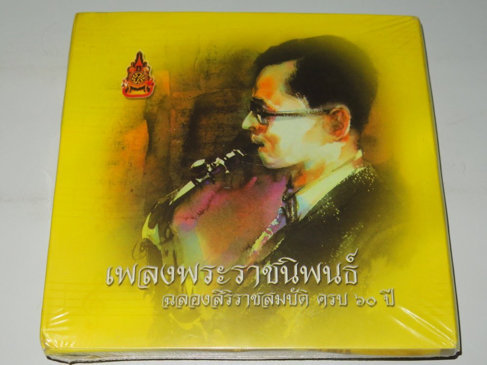 38. เพลงพระราชนิพนธ์ ฉลองสิริราชสมบัติครบ 60 ปี มี 2 แผ่นทอง 24 เพลง + โน๊ตเพลงพระราชนิพนธ์อีก 1 แผ่น มีบุ๊คเล่มหนา 100 หน้า / ซีล / 390-
