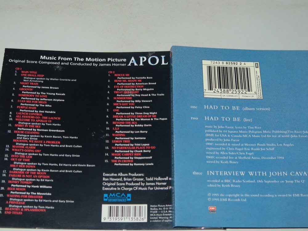 113. Music From The Motion picture Apollo 13 มี 2 ซีดี 38 เพลง แผ่นสวย / Made in Australia / 180-