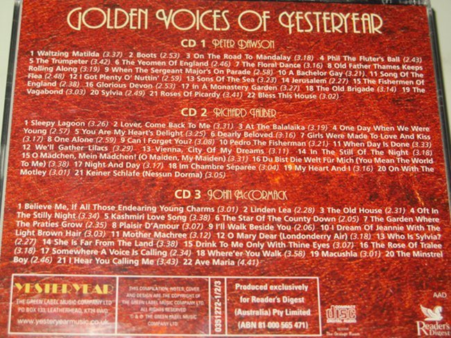 Quote from ocean on October 20, 2025, 3:14 pm155. Golden Voices Of Yesteryear John McCormack / Richars Fauber / Peter Dawson มีหนังสือ + 3 ซีดี 65 เพลง แผ่นสวย / 320-