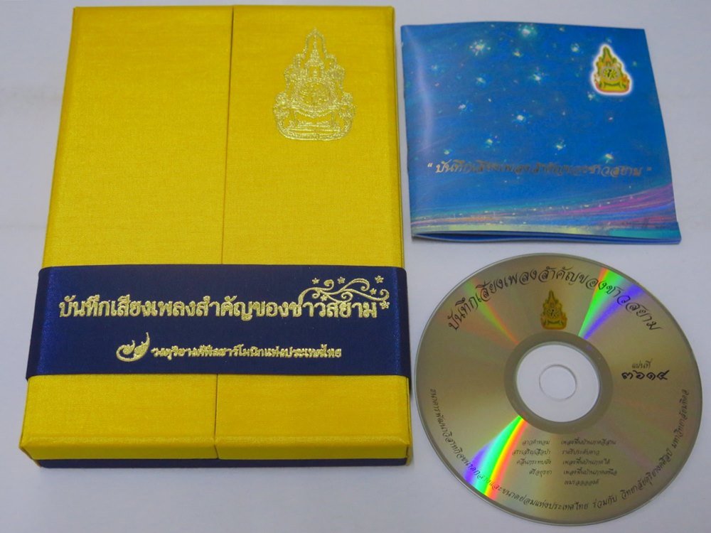 161. บันทึกเสียงเพลงสำคัญของชาวสยาม โดยวงดุริยางค์ฟิลฮาร์โมนิกแห่งประเทศไทย มีหนังสือ + 1 ซีดี แผ่นทอง แผ่นสวย บรรจุในกล่อง ผ้าไหมสวยงาม / 600-