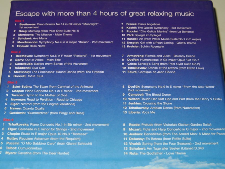 32. Classic FM Relax & Escape the no.1 collection of smooth classis มีกล่องสวม 4 ซีดี 51 เพลง แผ่นสวย / Made in The EU / 180-