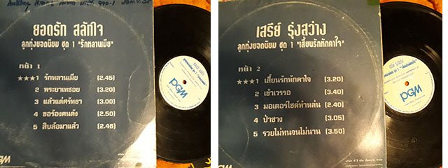 แผ่นที่ 46 ยอดรัก + เสรีย์ / รักหลานเมีย, พระยาเทซอย, แล้วแต่ศรัทธา, เข้าเวรรอ, มอเตอร์ไซค์ทำหล่น, ป่าซาง ฯลฯ สภาพปก VG + มีรอยโอริง รอยเขียนปากกา รอยยับนิดหน่อย สภาพแผ่น VG ++ เป็นรอยบางๆ นิดหน่อย