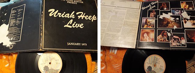 แผ่นที่ 35 URIA HEEP / LIVE 1973 สภาพปก VG มีรอยถลอกด้านหลัง, ด้านในปก, ปกหลัง นิดหน่อยค่ะ มีสก๊อตเทปใสที่สันปก ปกติมี 2 แผ่น ชุดนี้มี 1 แผ่น แผ่น U.S.A. สภาพแผ่น VG +++ เป็นรอยบาง ๆ นิดหน่อย ยังเงาสวย เพลงดัง JULY MORNING, TEARS IN MY EYES,SUNRISE , SWEET LORRAINE, TRAVELLER IN TIME, EASY LIVIN ฯลฯ มีรอยคราบนิดหน่อย ไม่มีผลต่อการเล่น แผ่นรุ่นเก่า ราคา 500 บาทค่ะ บันทึกเสียงดี เพลงไพเราะทั้งชุดค่ะ