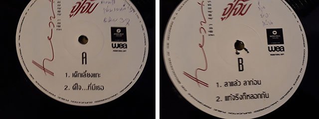 แผ่นที่ 39 อุมาพร บัวผึ่ง / จากใจถึงใจ, หัวใจอับปาง, สายลมหวล, ศาลาคนเศร้า ฯลฯ สภาพปก VG + มีรอยคราบเหลืองหน้า + หลัง ปกหลังมีถลอก และคราบเหลืองนิดหน่อย วิชัย ปุญญยันต์ จากวง พิ้งค์แพนเตอร์ เรียบเรียงดนตรี สภาพแผ่น VG +++ เป็นรอยบาง ๆ แผ่ว ๆ นิดหน่อย ยังเงาสวย ราคา 130 บาทค่ะ เพลงไพเราะ บันทึกเสียงดีค่ะ
