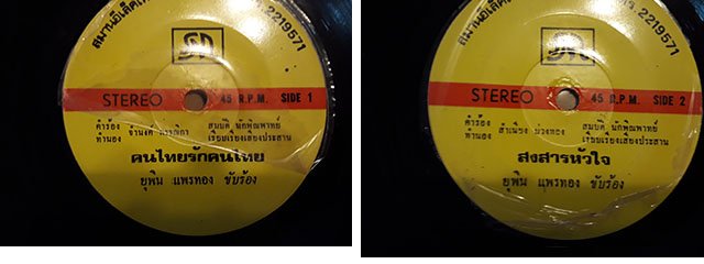 แผ่นที่ 17 ยุพิน แพรทอง / คนไทยรักคนไทย สภาพแผ่น VG +++ เป็นรอยบางๆ นิดเดียว ราคา 80 บาทค่ะ เพลงไพเราะ บันทึกเสียงดีค่ะ