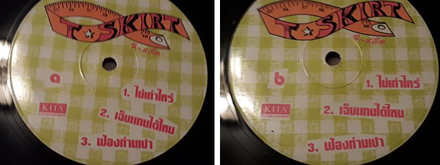 แผ่นที่ 21 T SKIRT แผ่นตัด 3 เพลง 2 หน้าเหมือนกัน มีเพลง ไม่เท่าไหร่, เจ็บแทนได้ไหม, ฟ้องท่านเปา ปกแจก สภาพแผ่น VG ++ TO +++ เป็นรอยบางๆ แผ่ว ๆ นิดเดียว ราคา 100 บาทค่ะ เพลงไพเราะ บันทึกเสียงดีค่ะ
