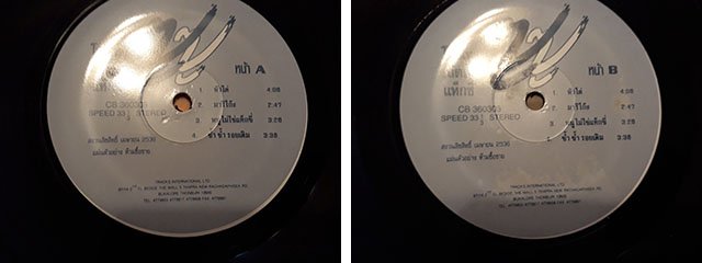 แผ่นที่ 23 ฟุตปาธ ปกเป็นแผ่นเต็ม แผ่นเป็นแผ่นตัด มี 6 เพลง สภาพปก VG + มีรอยสก๊อตเทปกาวที่สันปก รอยคราบเหลืองหน้า + หลัง สภาพแผ่น VG +++ เป็นรอยบางๆ นิดหน่อย ยังเงาสวย มีเพลง ติดดิน, พักผ่อนซี่, THIS IS A BOY, โอ๊ย..อยากมีเมีย, หนุ่มเกี๊ยว, บ้านนอกซอกตึก ราคา 130 บาทค่ะ เพลงไพเราะ บันทึกเสียงดีค่ะ