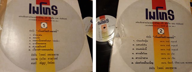 แผ่นที่ 30 ไวพจน์ เพชรสุพรรณ / กันตรึมไวพจน์ เพลงดัง สาวฝั่งโขง, ล่องโขงคืนเพ็ญ, คนสมัยนี้, แสบหัวใจ, ด่วนสุรินทร์ ฯลฯ สภาพปก VG มีรอยขาดริมปกขวาด้านหลังนิดหน่อย รอยเขียนปากกา สภาพแผ่น VG +++ เงาสวย เป็นรอยบางๆ นิดหน่อย ราคา 120 บาทค่ะ เพลงไพเราะ บันทึกเสียงดีมากค่ะ