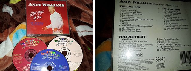 แผ่นที่ 75 ANDY WILLIAMS /SINGS SONGS OF LOVE 36 ALL - TIME FAVORITES แผ่น U.S.A. มี 3 CD เพลงไพเราะคุ้นหูทั้งอัลบั้ม ราคา 180 บาทค่ะ