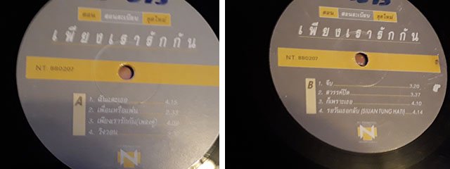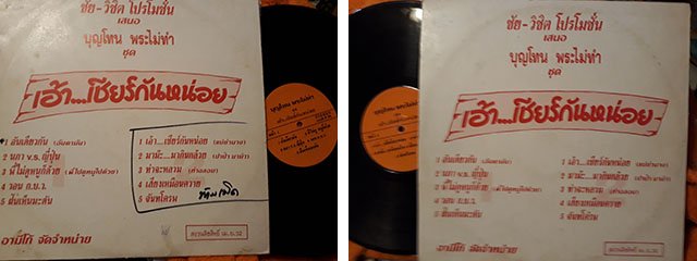 แผ่นที่ 16 บุญโทน พระไม่ทำ ชุด เอ้า...เชียร์กันหน่อย, อันเดียวกัน, นภา VS. ญี่ปุ่น ฯลฯ สภาพปก VG ++ มีรอยเขียนปากกานิดหน่อย รอยคราบเหลือง สภาพแผ่น VG +++ เงาสวย เป็นรอยบางๆ นิดหน่อย ราคา 140 บาทค่ะ บันทึกเสียงดี เพลงไพเราะทั้งชุดค่ะ