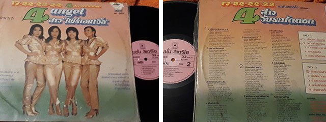 แผ่นที่ 24 4 ANGLE สาว "โฟร์เอนเจิ้ล" เพลงดังเสียงกระซิบจาก ม.ช., รักเธอดั่งสายธาร, ฉันรักกรุงเทพ, อยากเรียนหมอ ฯลฯ สภาพปก VG + มีรอยขาดมุมปกขวา รอยเขียนปากกา รอยคราบเหลืองนิดหน่อย สภาพแผ่น VG +++ เงาสวย เป็นรอยบางๆ นิดหน่อย