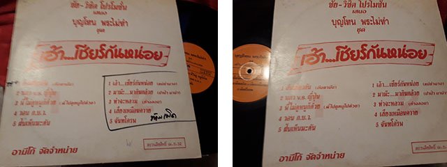 แผ่นที่ 52 บุญโทน พระไม่ทำ / เอ้า....เชียร์กันหน่อย สภาพปก VG ++ มีรอยเขียนปากกา สภาพแผ่น VG +++ เงาสวย เป็นรอยบาง ๆ นิดหน่อย ราคา 150 บาทค่ะ