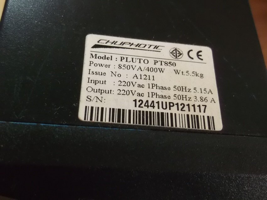 รายการ3 เครื่องสำรองไฟ UPSรุ่นpt850 เปลี่ยนแบตเตอรี่ใหม่แล้ว กำลังไฟ 850VA400W หนัก5.5กิโล ใช้ได้ปกติ ขาย 550บาท รวมส่งครับ(ปรับลดเหลือ450บาท)