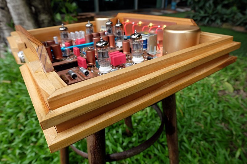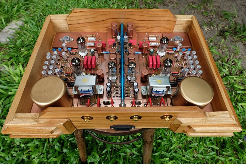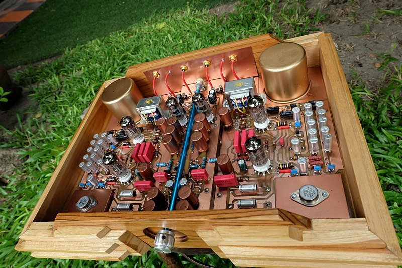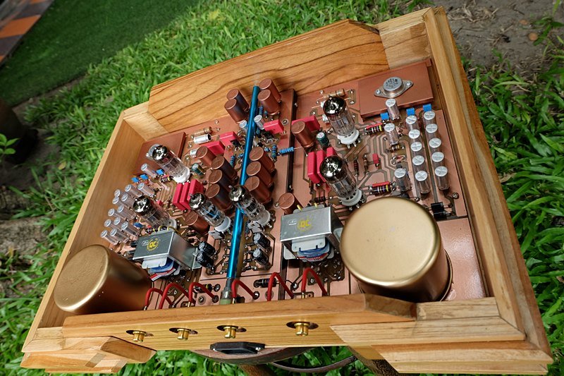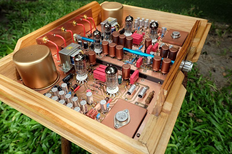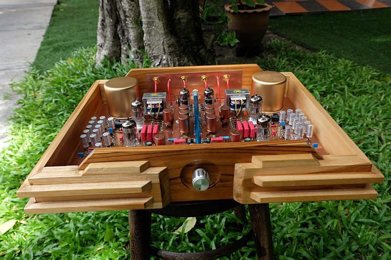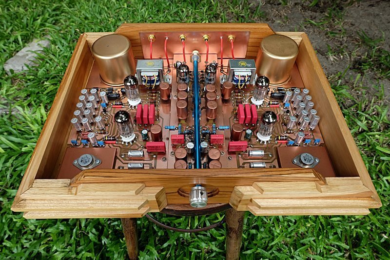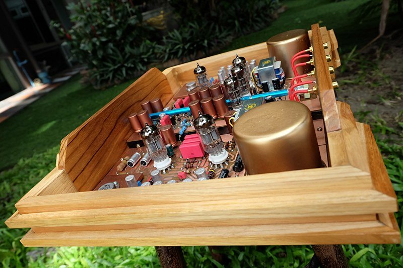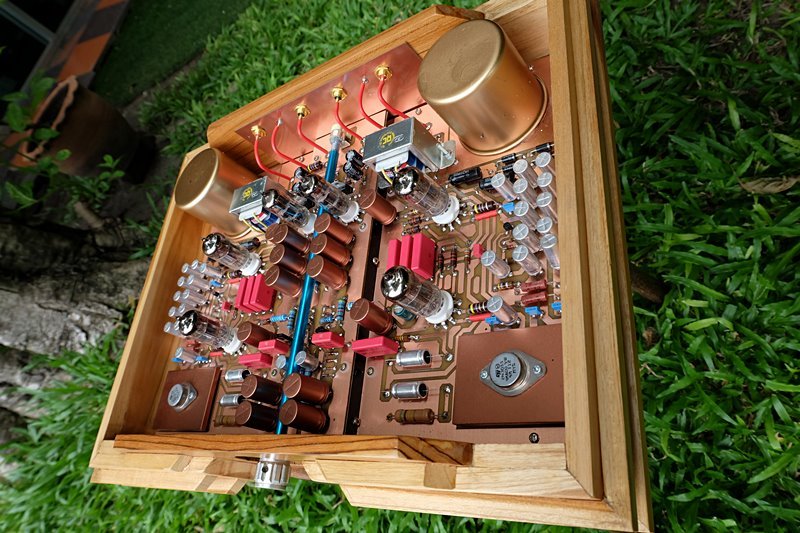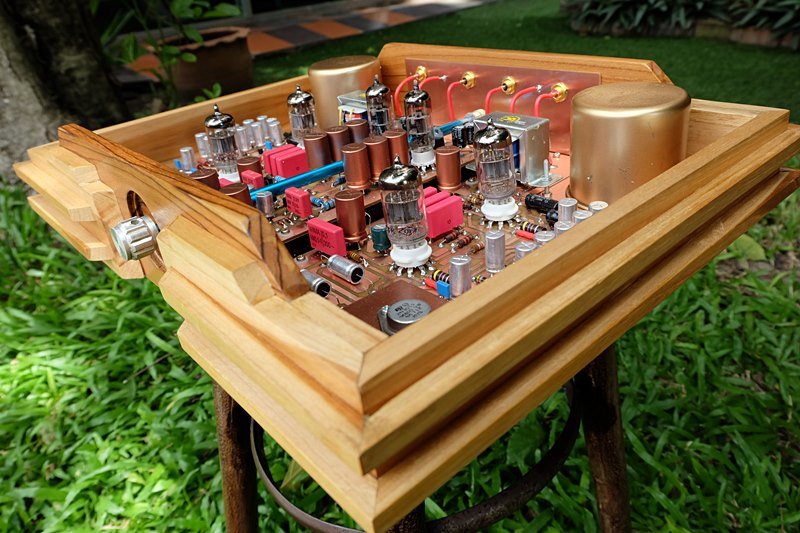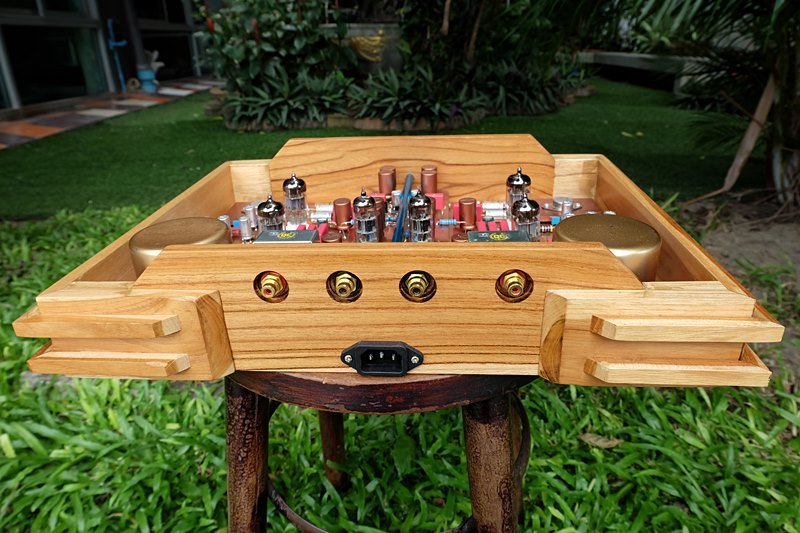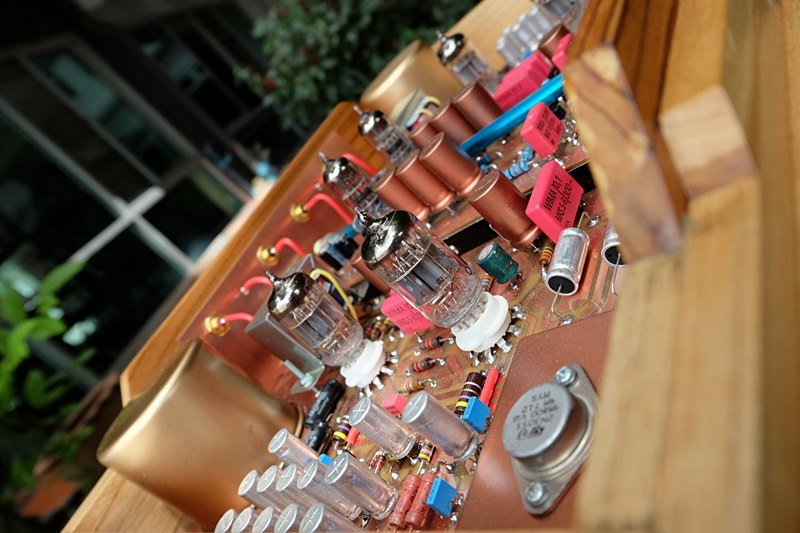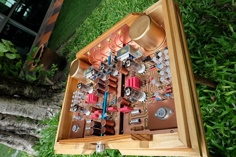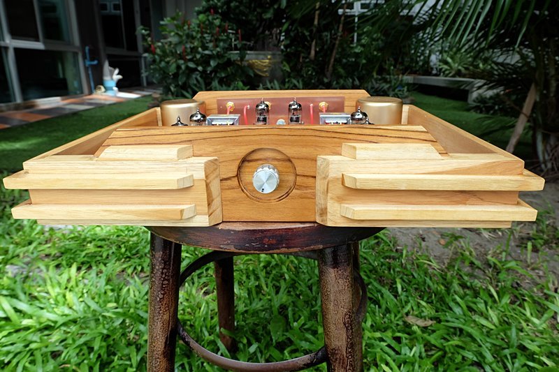 1.preamplifierหลอด (6dj8/6922/6n1p)x4 Dual Mono แท่นไม้สัก สภาพสวยพร้อมใช้งาน.
